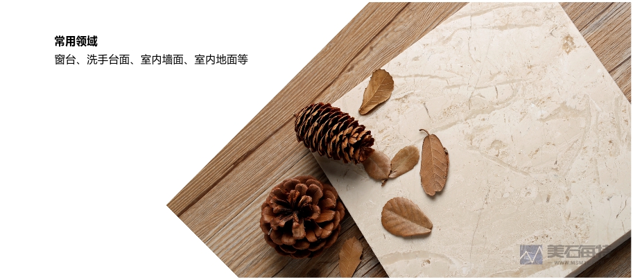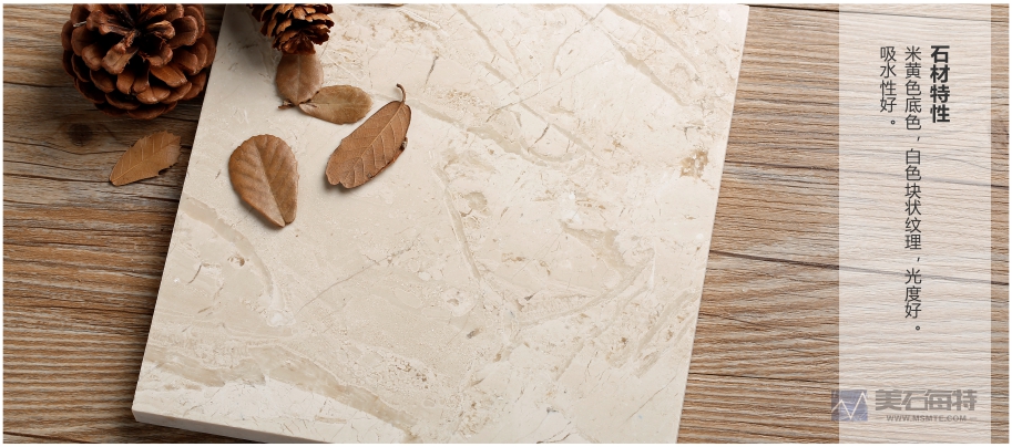 米黄色底色,白色块状纹理,光度好,吸水性好