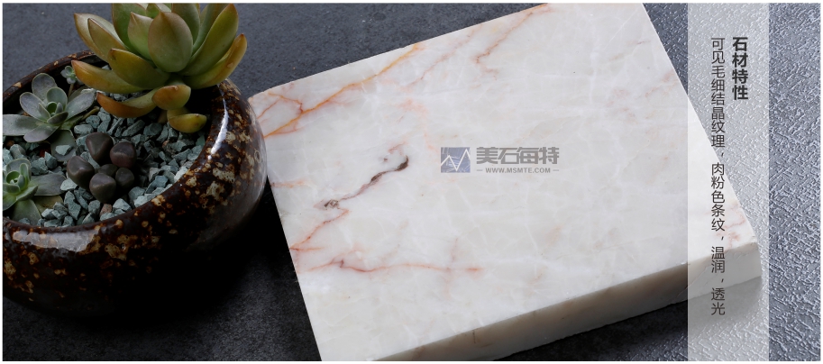 可见毛细结晶纹理,肉粉色条纹,温润,透光