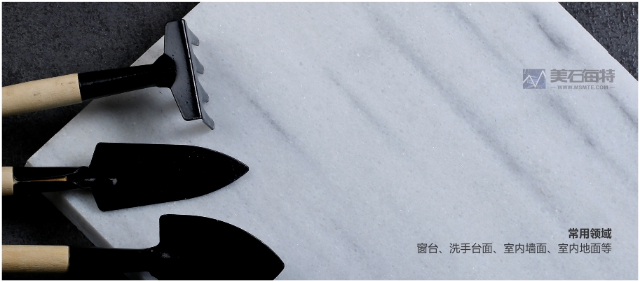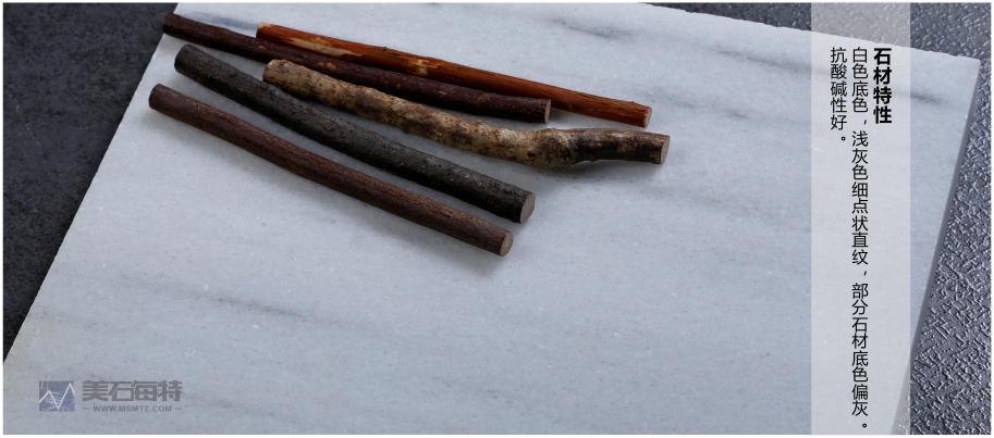 白色底色,浅灰色细点状直纹,部分石材底色偏灰,抗酸碱性好