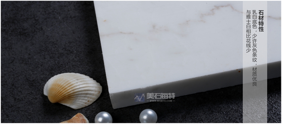 乳白底色,少许灰色条纹,材质优良;与爵士白相比花线少