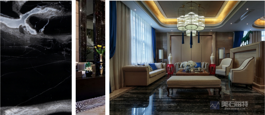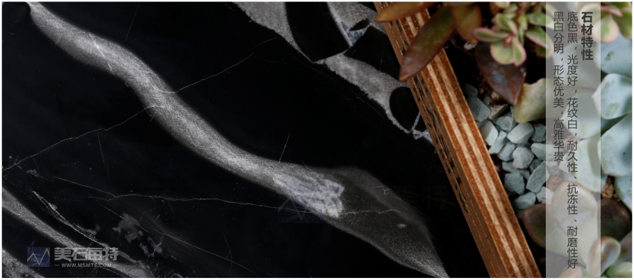 底色黑,光度好,花纹白,耐久性、抗冻性、耐磨性好